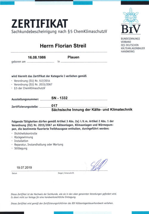 Wir, als Kälte-Klima Fachbetrieb, erfüllen alle erforderlichen Voraussetzungen, welche zur Durchführung einer